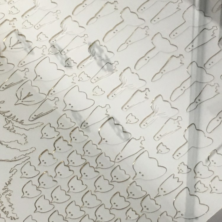Digital Embroidery Series. 2019. Digital embroidery, laser-cut acrylic, copper, aluminum, powder coat.