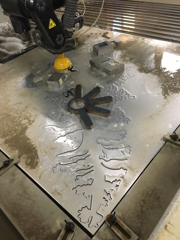 Included in these images are process photos of the CAD work, laser cutting, and waterjet cutting process.