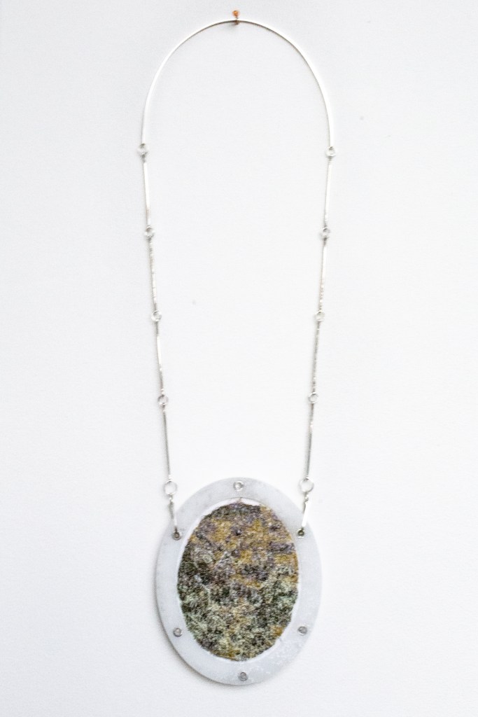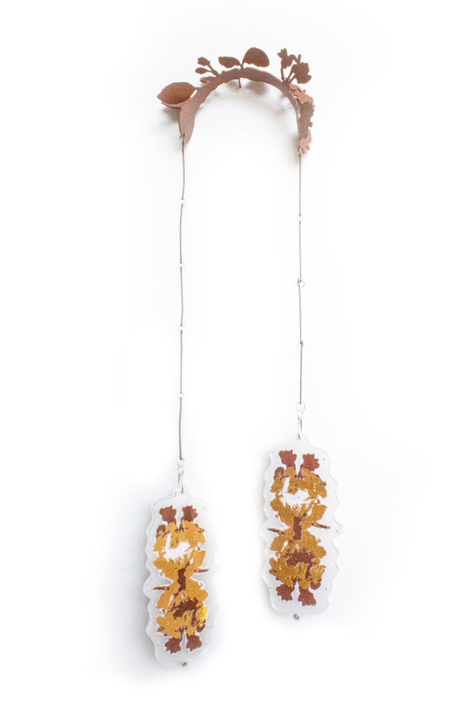 This piece was created for the 2021 Society of North American Goldsmith Exhibition in Motion event. Smith designed the aluminum structure using imagery of native plants recommended in supporting pollinators of the NorthEast Ohio area, where she and Ramirez share a studio.