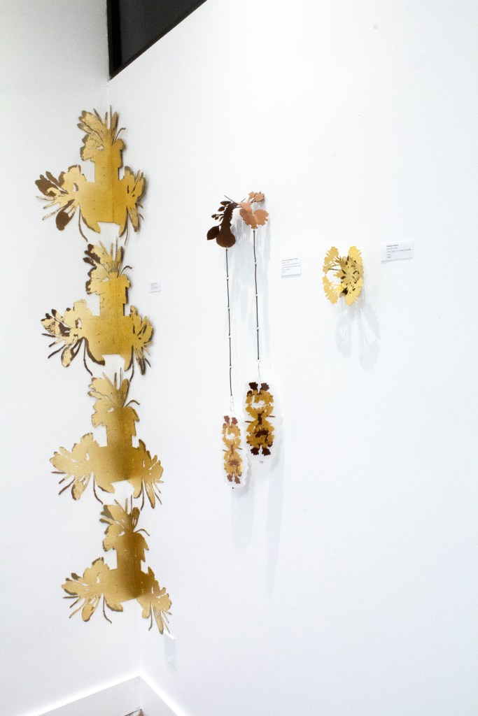 Plantain Wall Brackets. 2019. Waterjet cut aluminum, powder coat, gold leaf.