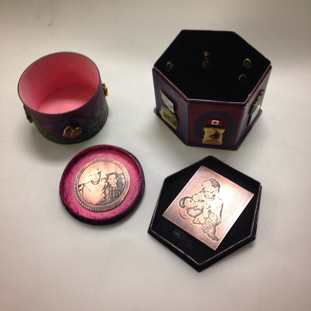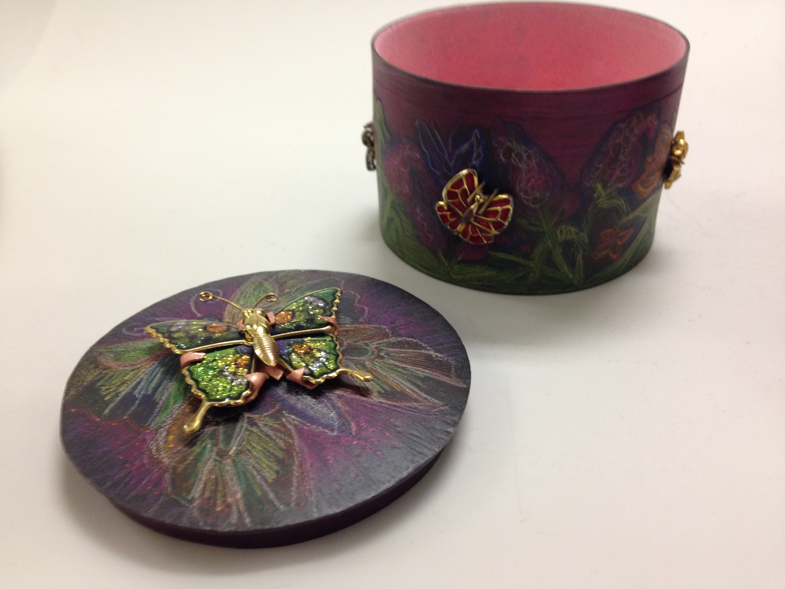 A series of commissions that is ongoing and extremely exciting. I have been working with a woman to create boxes and keepsake items for members of her family. Using the stones and costume jewelry pieces from her mother’s unique collection, I am creating pieces that her family can treasure and keep the mother’s memory close, something that would be harder to do if the jewelry was kept in a drawer or given away.