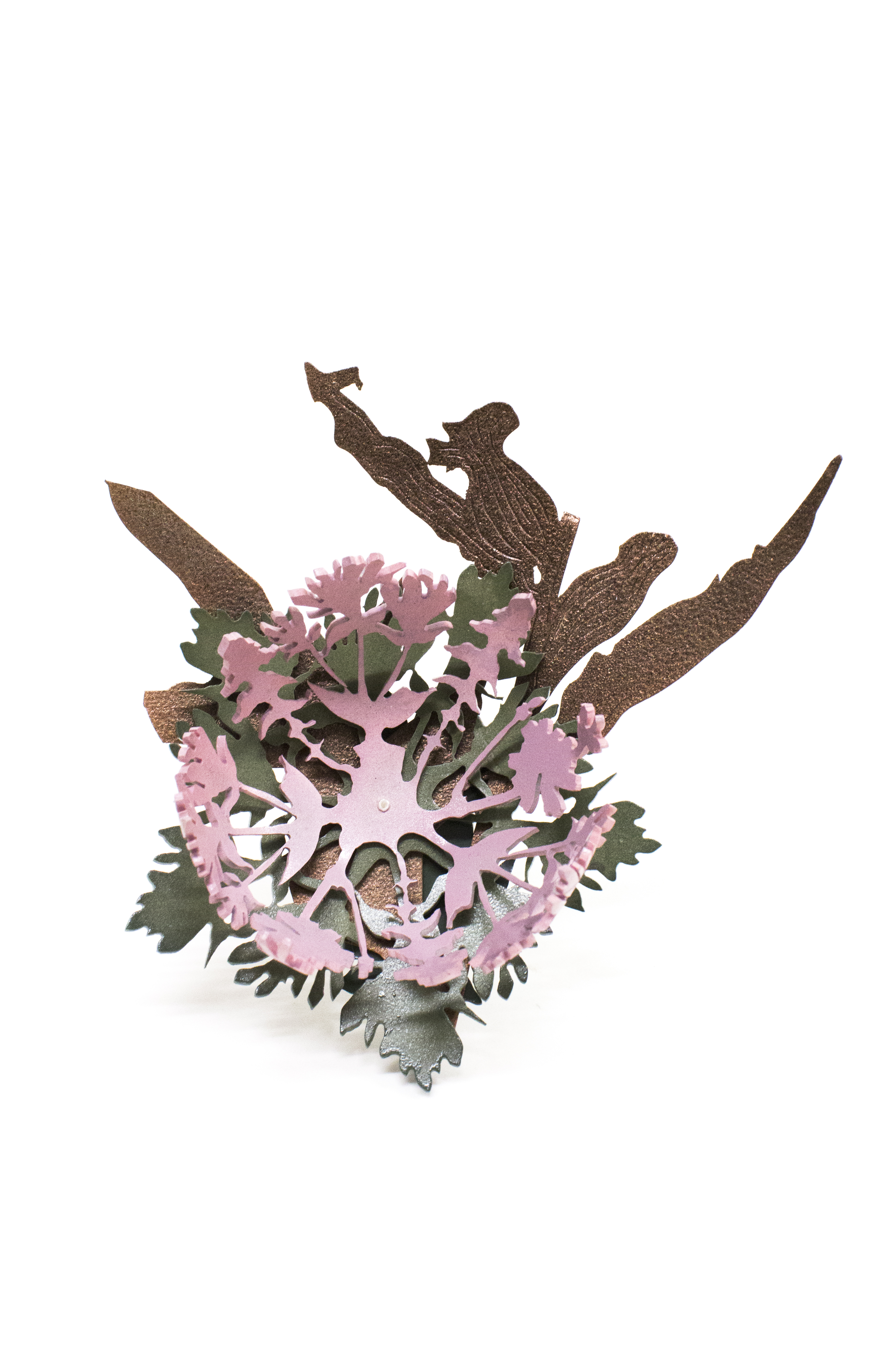 pink and green posy on a stick brooch